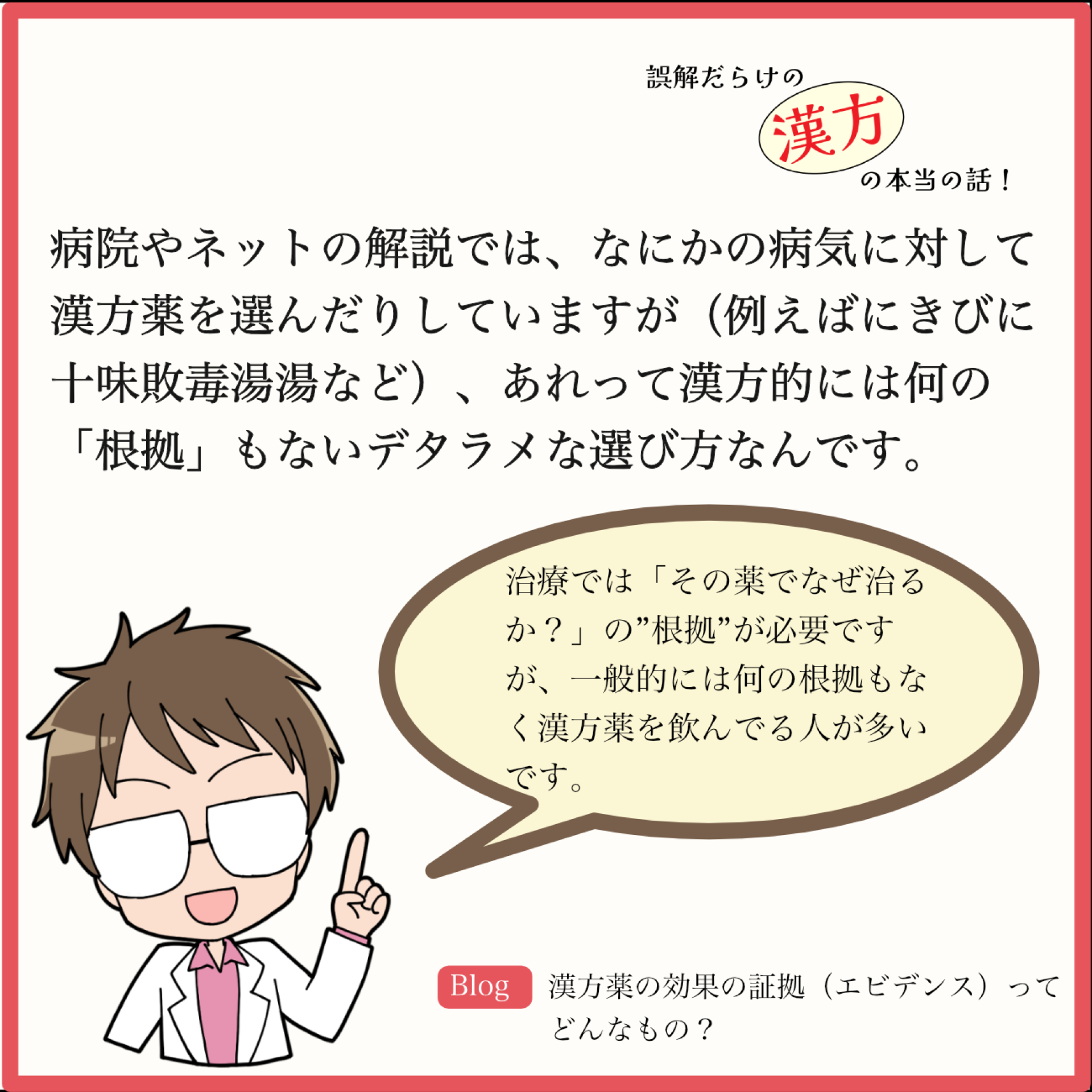 平たく言えば、『医者は何の根拠もなく、漢方薬を処方している』といってもいいと思います。